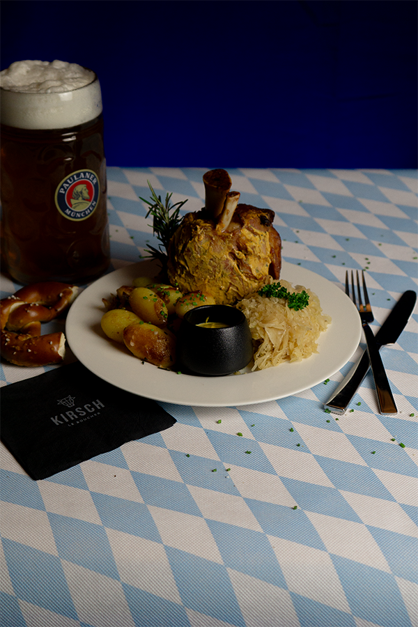 Schweinshaxe mit Bratkartoffeln und Sauerkraut